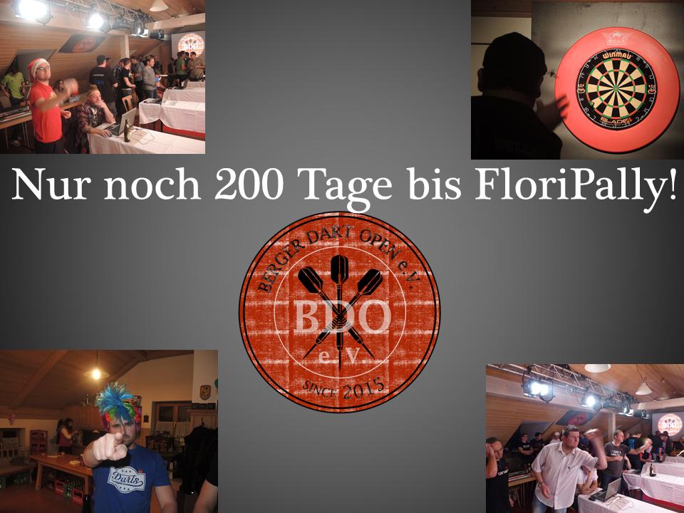 So ganz schön langsam solltet ihr wieder mit dem Training beginnen. Auf den Tag genau stehen wir 200 Tage vorm großen Turnier im FloriPally 2017. Die Zeit vergeht wie im Flug, ständig passieren neue und auch verrückte Dinge rund um die Dartgemeinde in Albaching. Mittlerweile sind wir ein Verein, aber das schon traditionelle Turnier wird in geohnter Form -vielleicht dieses Jahr mit einigen zusätzlichen Überraschungen- für alle Albachinger stattfinden. Also tragt Euch den Termin ein und markiert den 09. Dezember ganz fett in Eurem Kalender. Bis dahin wird der Berger Dart Open e.V. aber noch die ein oder andere Turnier- und Trainingsmöglichkeit anbieten. Genaueres erfahrt ihr auf bergerdartopen.de!