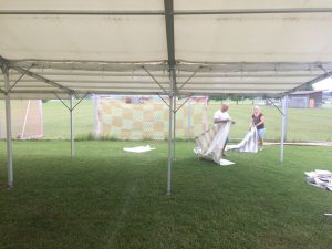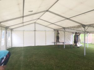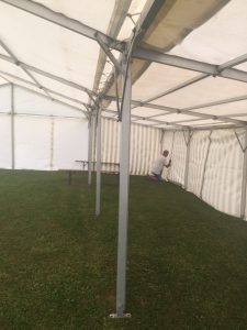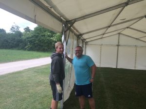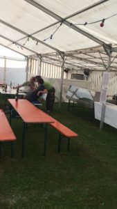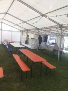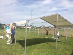 Auch schlechtes Wetter ist kein Problem, wir haben ein Zelt organisiert und da bleibt’s trocken oder schattig, ganz wie wir es brauchen. Das Zelt gibt´s von der Strassenmeisterei! — Vielen Dank dafür!