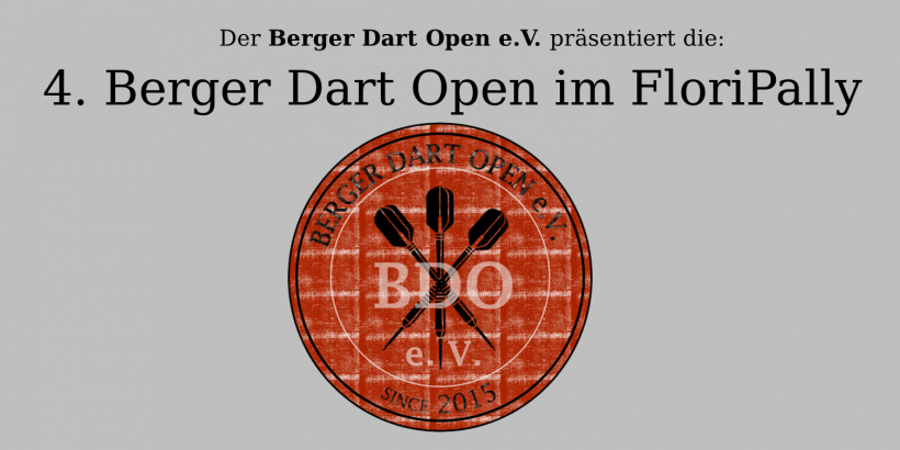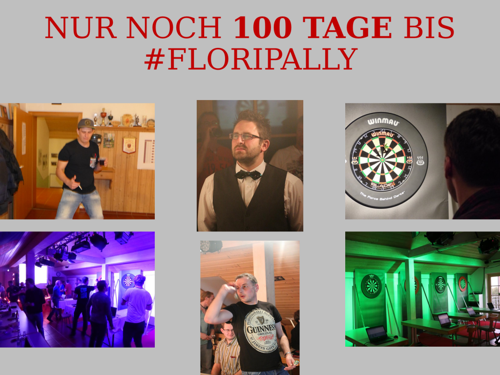 Es dauert nicht mehr lang. Noch 99 Mal schlafen, dann ist es soweit. Das FloriPally eröffnet wieder seine Pforten. Am 09.Dezember 2017 finden die 4. Berger Dart Open statt. Es wird wieder eine rießige Party und ein hartes Stechen und Kämpfen für das Weiterkommen und den Sieg. Alle stellen sich bereits jetzt die Frage: Wir der Irish One diesmal den Titel ein viertes Mal gewinnen, oder kann sich (endlich) mal ein Anderer in die Siegerliste eintragen. Um dies zu schaffen haben alle noch 100 Tage Zeit zum Training. Viel Spaß beim trainieren. Selbstvertsändlich dürft Ihr dafür alle den vereinseigenen Dartraum dafür verwenden.
