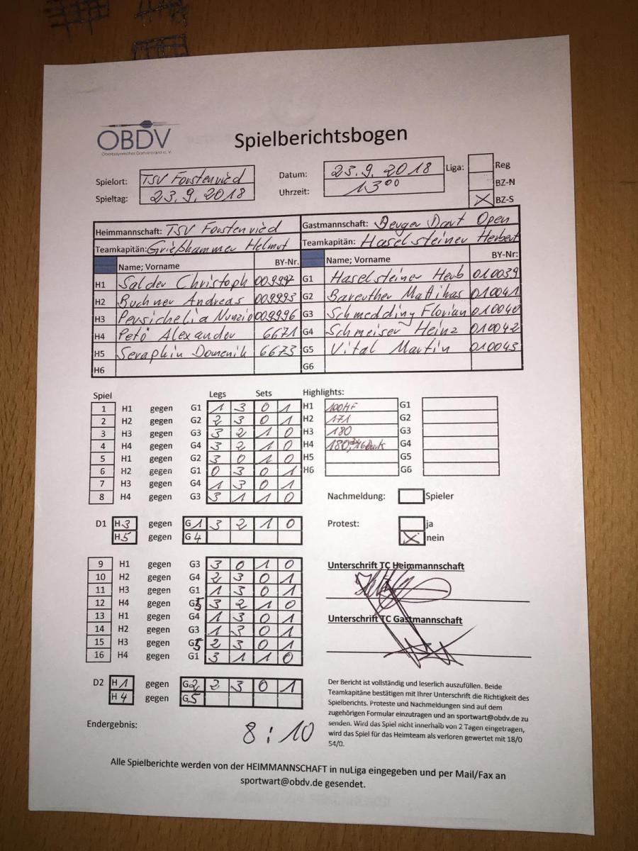 Ein Festtag für den Berg Dart Open e.V.! Erster Pflichtspielsieg der Vereinsgeschichte! Erste Ligasieg der Vereinsgeschichte! Erster Auswärtssieg der Vereinsgeschichte! Das schaffte heute die erste Mannschaft des Berger Dart Open e.V. um Mannschaftskapitän The Irish One. Ole!Ole!Ole!
