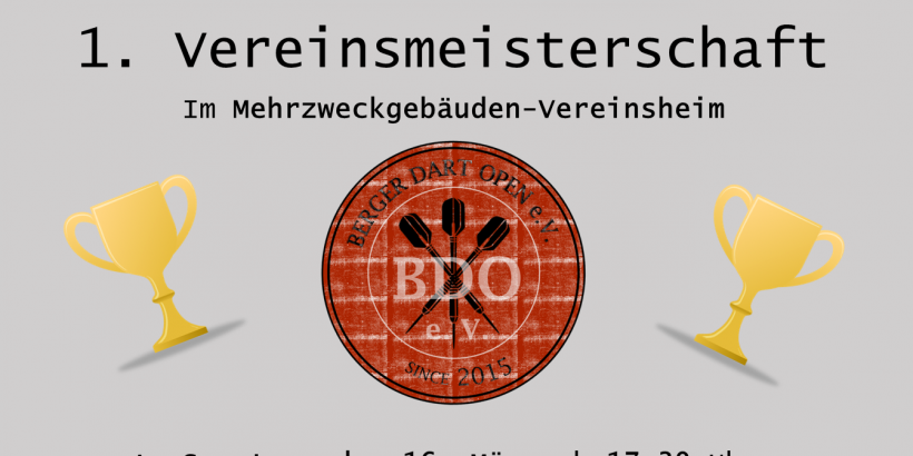 Es ist soweit der Berger Dart Open e.V. führt die lang erwartete und heiß ersehnte Vereinsmeisterschaft durch. Am 16. März wird in drei Leistungsgruppen auf sechs Scheiben der beste Darter des Berger Dart Open e.V. ausgespielt. Mitspielen dürfen ausschließlich Vereinsmitglieder! Die Anmeldung läuft bereits auf Hochtouren und einige Hochkaräter haben bereits zugesagt. The Irish One, Ironman, Butterfly aber auch Who The F**k ist the Stormy Young Bung, Tadel und Gladiator sind mit von der Partie. Jüngster Teilnehmer wird wohl Simon sein. Seines zeichens Sohn von Greying Oak und Großtalent hat auch seine Teilnahme zugesagt, was uns richtig freut. Es lohnt sich also dabei zu sein. Wer noch kein Vereinsmitglied ist der darf natürlich gerne noch beitreten und mitspielen.