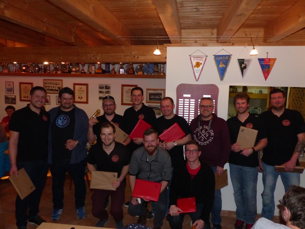 The Irish One persönlich und auch der zweite Turniersieger Sergeant waren zum Neujahrsempfang erschienen. Dazu kamen alle Finalisten der letzten Jahre The 57/Bulldozer/Jack und The Stormy Young Bung. Alle waren da und alle hatten richtig gute Laune. Ebenso im weiten Rund waren alle BDO-Veteranen sichtbar, auch Turnier-Ikone Greying Oak (der mit der gesamten Familie – alle Mitglieder im Verein angereist- war) und der M.O.C aller Berger Dart Open Turniere war angereist. Nach dem wunderbaren Verzehr der regionalen Grillspezialitäten und der mitgebrachten Salate gab es einen Vereins-Jahresrückblick mit anschließender Ehrung aller BDO-Veteranen.