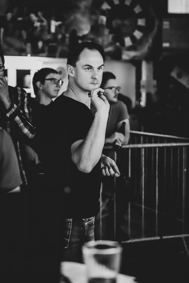 Das Teilnehmerfeld war so groß wie nie und so zuverlässig wie selten, auch was den Umsatz an Getränken betraf, jedenfalls schienen alle einen großen Spaß gehabt zu haben. Das sportliche ist im wesentlichen darin zusammengefasst, dass die hoch gehandelten Titelaspiranten, wie Marksmen, Flycatcher, Ironman und Butterfly nicht in die Finals einziehen konnten und somit zwei No-Names (Blade und The Horror) im Halbfinale auftauchten. Entscheiden dabei war sicher auch das Aufeinandertreffen von Jack und Ironman bereits im Achtelfinale, ebenso im Achtelfinale erwischte es Butterfly und bereits im Sechzehntelfinale Breaker. Sie fielen wie die Fliegen. Jack mit einer sehr starken Turnierleistung musste sich im Viertelfinale The Horror geschlagen geben, was einigermaßen enttäuschend war. Auch für die Fans des coolsten Typen der Halle. Sicherlich beachtlich war die Leistung von Zielwasser, der zuletzt bei den 2. Berger Dart Open am Start war, und ins 1/8-Finale einziehen konnte. Genauso beachtlich die Leistung unserer Publikumslieblinge Greying Oak und Utzenbauer, die jeweils in der vorrunde glänzen konnten und auch in K.O.-Phase einzogen. Pech hingegen hatten die BDO-Veteranen Tailspin und MWG. Beide schieden nur auf Grund des schlechteren Legverhältnisses in der Vorrunde aus. Kopf Hoch Jungs! Und Danke dafür, dass Ihr uns bereits seit 6 Turnieren die Treue haltet. Mittlerweile kennt man ja dann auch schon so seine Pappenheimer und weiß zum Beispiel, dass The 57 oder Stormy Young Bung in der Vorrunde zu erwischen eher Pech ist. Zu späterer Stunde sind beide dann gut machbar :-).