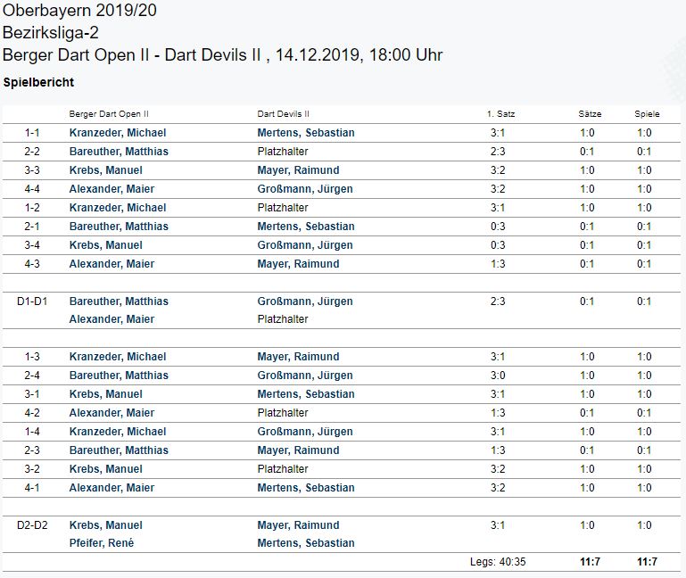 Sie waren angetreten um zu siegen, das war klar. Nominell sollte die Rosenheimer schlagbar sein und das Selbstvertrauen von Kapitän Freestyler war nach seinem Turniersieg vor Wochenfrist groß. Ligabetrieb ist aber dann doch ein anderes Pflaster und so taten sich alle BDO-Spieler recht schwer in den Abend zu finden. Von Beginn an war es ziemlich eng, zwar führte der Brger Dart Open e.V. mit 3:1 (Siege Flycatcher, Breaker und GreatAli), dennoch konnten wir uns nicht wirklich absetzen. So ging auch das erste Doppel verloren und zur Halbzeit war die sympatischste zweite Mannschaft links des indischen Ozeans im Hintertreffen. 4:5 aus Sicht des BDO stand es zu diesem Zeitpunkt. Es fehlten also noch 6 Siege zur Glückseligkeit. Angesichts der konstant guten Leistungen von Michael „Flycatcher“ Kranzeder waren zwei Siege so gut wie sicher, sollte Freestyler auch gewinnen, würden immer noch zwei Siegpunkte zum Gesamtsieg fehlen. Diese sollten Breaker und Bulldozer holen. Das letzte Doppel hat dann sowieso seine eigenen Gesetzte. Kein ganz so einfaches Unterfangen also. Flycatcher, Freestyler und Breaker gewannen Ihre ersten Einzel. Bulldozer (zur Halbzeit eingewechselt) verlor nach sehr schlechter Leistung sein Einzel recht klar mit 3:1. Der Gesamtspielstand zu diesem Zeitpunkt 7:6. Die mittlerweile für ein Dartspiel doch recht zahlreichen Zuschauer (DANKE!) sorgten für eine tolle Stimmung und riesengroße Spannung. Wenn jetzt Flycatcher und Freestyler ihre Spiele gewinnen würden, so rechneten die Edelfans, wäre ein Punkt schon mal eingetütet. Es kam aber anders und Freestyler musste seine Partie abgeben. Neuer Spielstand 8:7. Die letzten beiden Einzel spielten dann Bulldozer und Breaker. Breaker, mit einem Sahneabend, gewann seine Partie nach 2:0 Rückstand mit ShortLeg und Highfinish. Diese war sicher DER Wendepunkt hin zum Sieg. Respekt für die sensationelle Leistung des am besten frisierten BDOlers!!! Breaker hatte seinen Sieg sicher und somit stand es 9:7 für den BDOII. Ein Sieg musste also noch her. Es sah auch gar nicht so schlecht aus. Bulldozer führte mit 2:0, hatte aber dann die Hosen voll und konnte die Partie nicht beenden, so das es ins Entscheidungsleg ging. Auch in diesem wichtigen Leg für die ganze Mannschaft geriet der Bulldozer schnell in Rückstand. Der Gegner wohl auch etwas von der schwitzigeren Sorte, konnte nicht checken. Es kam zu einem nervenzerfetzenden Krimi auf die Doppel. Dann war irgendwann der Jubel riesengroß. Bulldozer checkte die Doppel 5 mit dem letzten Pfeil und der 10te Punkt war sicher. Der erste Sieg der Vereinshistorie für eine zweite Mannschaft. Sensationell! Das zweite Doppel war dann nur noch Schaulaufen und der Jubel hielt bis in die frühen Morgenstunden an. Danke für diesen Abend!