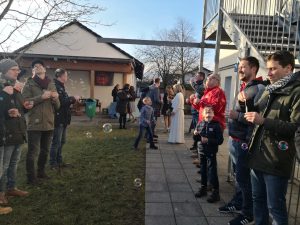 Frontman, Gründungsvater, Seriensieger der Berger Dart Open, Mannschaftskapitän der ersten Mannschaft und 2. Vorstand des sympathischsten Dartvereins der Erde ist in den Stand der Ehe eingetreten. Kurz vor Jahresschluss hat sich der Irish One fest gebunden und hat seine Sabine geehelicht. Wie Insider wissen, war dieser Schritt sehr lang von Ihm überlegt und vorbereitet worden. Aber mit der Geburt des gemeinsamen Sohnemanns hat sich der Seriensieger der Berger Dart Open offensichtlich dann doch den Herausforderungen der Ehe stellen wollen. Jedenfalls wünschen wir The Irish One und seiner Sabine (auch bekannt als die beste Nebendarstellerin der legendären Serie #RoadToFloriPally) alles erdenklich Gute für die Zukunft und ein glückliches Leben. In diesem Sinne GameOn!