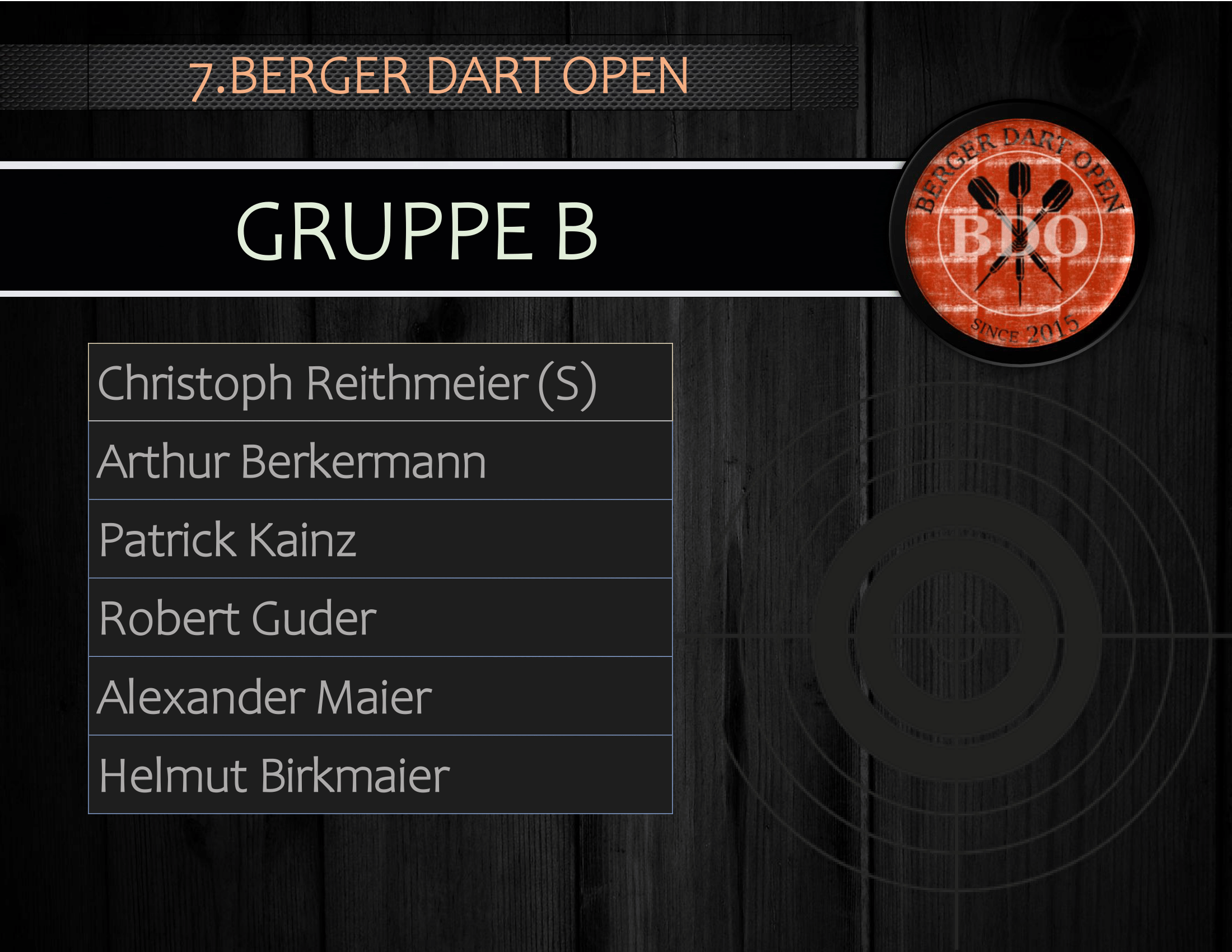 Als Gruppenkopf gesetzt ist Christoph Reithmeier in der Gruppe B. Seine erste Teilnahme in 2019 führte ihn gleich mal ins Halbfinale des Turniers, was wohl die größte Überraschung zum damaligen Zeitpunkt war. Nun dürften alle äußerst gewarnt sein, wenn „The Horror“ wieder ans Oche treten wird. Die Rolle des Favoritenschrecks wird ihn sicherlich auch dieses mal wieder sehr gut gefallen. Ein Wiedersehen in der Gruppenphase gibt es mit Edelsponsor sowie Edelfan des BDO, Robert „The 57“ Guder, der auch dieses mal den Einzug in die nächste Runde fest einplant. Doch so leicht dürfte dieses unterfangen nicht werden, wenn man die restlichen Namen dieser Gruppe liest. Mit dem „Lion“ wartet ein hungriger Gruppensieger aus dem letzten Turnier, dessen Ambitionen dieses mal definitiv mehr sein werden, als das 16tel Finale zu erreichen. Mit seinem legendären Krokodilkostüm Walk-On findet sich mit Alexander Maier der Mannschaftskapitän des BDO II (dem derzeitigen Tabellenführer) ebenso in der Gruppe wieder wie the one and only Helmut Birkmaier. Was werden wir von ihm dieses mal erwarten können. Seinem Anspruchsdenken nach sollte dann schon mindestens ein großer Name des Vereins aus dem Turnier geschmissen werden. Wie jedes mal ist er mit höchster Vorsicht zu genießen, denn passt du einmal nicht auf, „The Evil“ will kill you. Ergänzt wird die Gruppe durch den nächsten Rookie Arthur Berkermann. Ein noch unbeschriebenes Blatt, aber motiviert vom Gedanken das Feld in dieser Gruppe gehörig durchzumischen kann er hier durchaus für eine Überraschung sorgen.